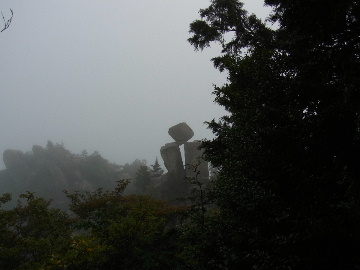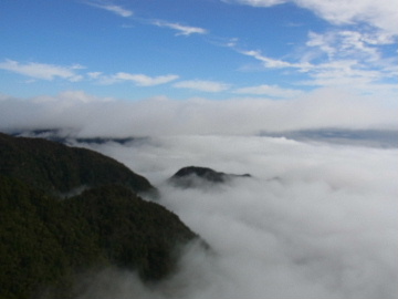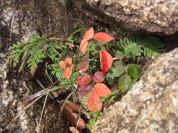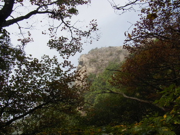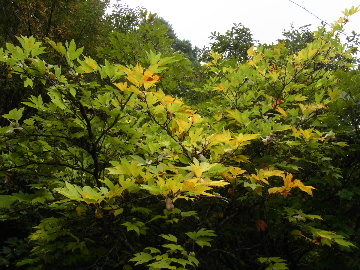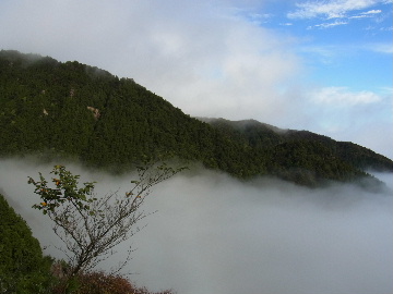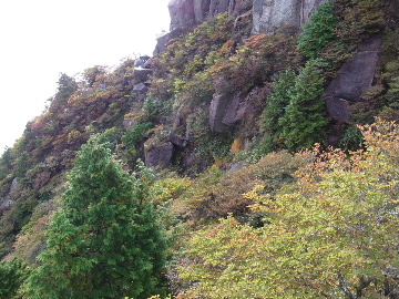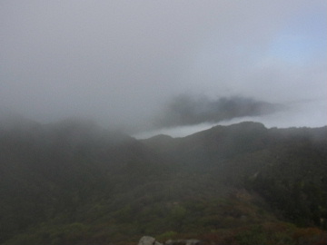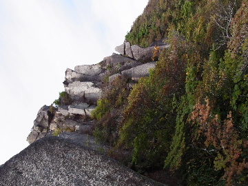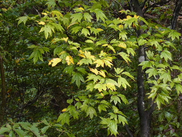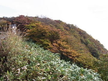 一週抜けてもう10月も半ば。時の流れは速いです。 今日は雨模様のようですがメタボアラーム点灯中。今日も抜けたら体力は落ちる一方。雨でも少しは歩いておかねば。 6:25 a.m. 割谷駐車場着。 既にIお父さんと常連さん三人組がたむろしています。車の中から両手を振ってご挨拶。ってまだ動いてるんだから手放し運転じゃん。 急ぎ仕度にかかります。常連さん達はお空の様子見。もう随分明るくなってます。霧雨も殆ど感じないくらいに治まっています。これなら傘ささなくて好さそうです。 準備をしている間に、新しい道の情報を教えて貰いました。北勢バイパスとかいって、477号線バイパスの菰野イオンの少し手前に出来たT字路信号を左折すると23号線川越ICの交差点に抜けられるそうです。これは復路の場合ですが、往路なら川越IC交差点を右折すれば道なりに477号バイパスまで一本道。こりゃまた好い情報を頂きました。早速帰りに走ってみる事にします。 さあでっぱつという頃に常連さん達が騒いでいます。なんとこんなアスファルトの上で蛭騒ぎ。居るんですね〜。まだまだ気温は高いですし、日照り続きの夏場は充分なエサにありつけなかったでしょうから、今からが頑張り時。蛭クンも生きていかなきゃならないんですから。昨今のマダニ騒ぎと比べたら、ウイルスの宿主ではない蛭クンなんて可愛いもんです。なんなら献血してあげても良いくらい。(冗談冗談) 6:45 a.m. でっぱつ。 常連さん達はまだ様子見のようです。 雨上がりで本谷は増水しているだろうし、傘をさすと両手が使えなくなるので今日は中道。オバレ岩ズッコケ事件以来通行自粛との事なのであまり大っぴらには口には出来ませんが。まあ自己責任ということで。 スカイラインから中道へ。いきなりの急登。一週抜けただけで堪えます。加齢と共に体力が落ちるのも早くなっています。ヒーハー! 傘はさしていないし合羽も着ていない、それで既に汗みどろ。合羽なんてもう、よう着ません。慰霊碑の傍まで登った所で一枚脱ぎます。暑っつ〜。 岩棚の上で小休止。今までだと立ったまま休憩でしたが、ここ最近立ってられなくなりました。でも腰を下ろしてしまうとケツから見えない根が生えて立ち上がれなくなるんですね。困ったもんです。 周りはガスに埋め尽くされています。風も無いので晴れる事は無いでしょう。そう言えば今日は全く写真無し。見えるものが無いんだから仕方ない。そうだガスガスの地蔵岩でも撮っておくか。 相変わらず周りはガス。まあ日射しが遮られ多少は涼しいですが湿度が高く身体中ムレムレ。 キレットを越え登り返し。ゼーハーゼーハーしんどい事この上なし。 8:00 a.m. 北谷テラスで小休止。 北谷はかなり上までガスに埋め尽くされています。辛うじて対岸の国見尾根の上部が顔を出しているだけ。でもその上には青空も広がっています。下界は雨でも山の上は晴れってよくありますもんね。 休んでいる内にガスがだんだん下がって行き、ヤシオ尾根の末端にハライドが姿を現しました。腰越峠はまだガスですから丁度浮島のように見えます。こんな景色も良いもんだ。 その後はまだガスに濡れた掘割を行きます。丁度背面から日に照らされ後頭部が熱いです。 8:20 a.m. 掘割ドンツキ着。 正面エルガーフェイスが朝日に輝いています。これはこれで奇麗です。こんなのを見ると錫杖沢からの前衛フェイスを連想します。 岩稜帯を行きます。岩の狭間に小さい秋見っけ。 そして富士見岩尾根末端からひょっこりと顔を出すと・・・。ええ天気やん。 トラバース道へ回り込むと、少し色付きかけています。 右側に目を遣るとハライド小島が雲海に浮かんでいます。 8:30 a.m. 上のテラス着。 振り返るとおとなしめにまだ色付きかけ。 8:45 a.m. 富士見岩着。 ガスが立ち込め幽玄です。 8:50 a.m. 朝陽台には小さな秋がいっぱい。 濡れた遊歩道を山頂広場へ。まるで雨上がり。つい先ほどまで雲の中だったようです。 そして自然学校前で大休止。コンビニオニギリで朝ご飯。薄日が射すと暑いくらい。まだまだ日射しは強いです。 9:35 a.m. 望湖台着。 ガスで雨乞岳は見えず。殆ど動いていないガスですがよく見るとゆっくりと東側三重県の方へ流れています。台風の影響は曇天だけで風は影響なしのようです。 マンネリではありますが記念碑広場から峠道へ。小さい秋を探しながら。 降るに従いガスが濃くなります。やはり山頂部だけガスの海から頭を出していたのでしょう。 コモノギク無いなあ。アキノキリンソウがチラホラ。紅葉?ところどころ黄色く色付いている葉っぱが。ヤシオ類は枯葉色。暑いだけで冷え込みが無かったから紅葉はイマイチ。 10:10 a.m. 武平峠でトイレ休憩。 そしてスカイラインへ。シロモジの黄葉が鮮やかです。 実が弾け中の種が覗いています。 スカイラインと登山道を出たり入ったり。スカイラインに出て足元を見ると小さな蛭がIお父さんの靴に。やはい居るんですね。 最後に蛭チェ