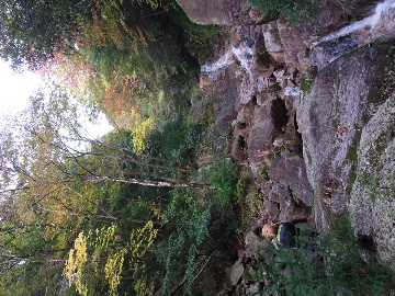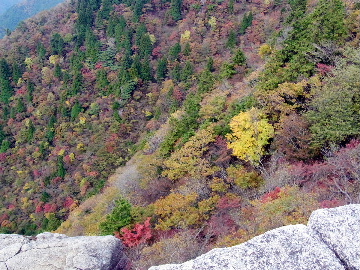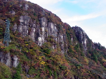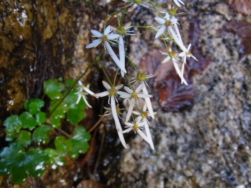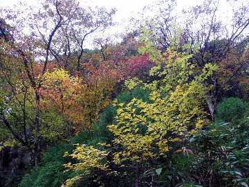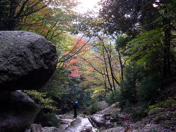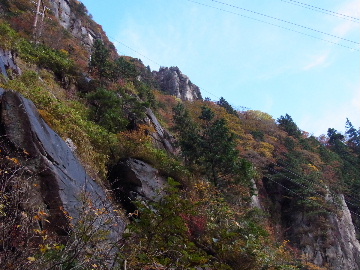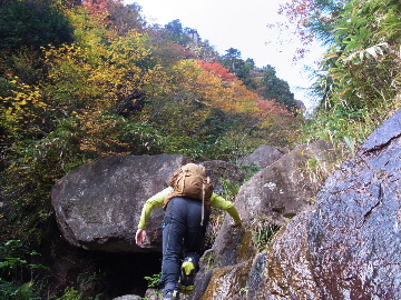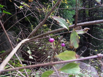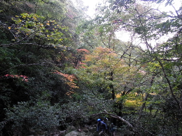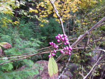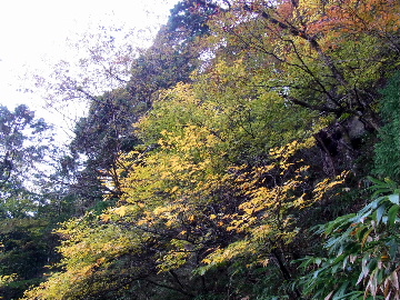 めっきり寒くなりました。ところが惰性で生きているtanuoさん、毎度お馴染みスタイルです。はい未だ夏と変わらぬ格好です。流石に出がけに寒過ぎたのでシャツだけ厚手のものを着て来ました。まあ今日一日くらいなんとかなるでしょ。 今日も川越から北勢バイパスで。遵法闘争車が居ないとやはり早いです。四日市市内を通って来るより15分くらい早いかな? 帰りは昼間なので確実に30分は短縮出来ます。 ただ道の駅に寄れないのでシャワートイレが使えません。道路左側にコンビニもありません。そうか23号線で用を足せば良いのか。 てな訳で湯の山バスターミナルをぐるっと一周、そこのトイレに立ち寄ります。ヒエ〜、便座が冷たくて〇〇〇が引っ込んじゃう〜。 6:05 a.m. まだ薄暗い中、割谷Pに到着。日の出がめっきり遅くなりました。 えっ、スカイライン側がもう満車になっています。どういう事? 常連さん達も既に到着しており、挨拶と同時に推測される混雑の理由を教えてくれます。山頂のブランコが今週半ばに営業開始され、その所為ではないか? との事。 それと先日YOUTUBEで見たオバレ岩の迂回路が出来ているらしい事も中道利用の一因かもしれません。いずれにしても参った参った。これでまた割谷Pは大混雑。いや、そろそろ雪の季節。雪が降ればまた静かになるでしょう。早〜く降れ降れ山の雪〜♪ そうこうしている内にIお父さんも到着。いかん、早く仕度しなくっちゃ。 その間にも皆さんどんどん出かけて行かれます。判で押したようにヤッケかジャケットを着ています。未だ夏スタイルはtanuoさんだけ。ちょっぴり恥ずかし〜。でもすぐに暑くなるわなあ。 一の谷新道で一人亡くなったそうです。常連さん達はその現場検証に行かれるそうです。そう言えばT尾さんがFBにヘリがホバリングしてるのをアップしてましたわ。あれがそうだったんですね。明日は我が身、明日は我が身。 そして我々は馬鹿の一つ覚えの本谷。ダイモンジソウの見納めと紅葉狩りです。 6:30 a.m. でっぱつ。 皆さんやはり中道のようです。我々は本谷へ。沢に出るまでの巻道を歩いていると話し声が聞こえます。ご丁寧に沢沿いを登っているようです。 この気温なら蛭被害は無いと思いますが、それでも濡れ落ち葉の中を歩くのは気分の良いものではありません。谷に出た所でホッと一息。そして羽織っていたダウンベストを脱ぎます。色付きかけの黄葉が綺麗です。 写真を撮っていると沢沿いの声の主がやって来ました。縦続きに2パーティ。最近は滅多に人を見なくなっていたのに今日はまた多い事で。まああれだけ車が居れば中にはこちらに来る人も居るでしょうね。 沢に入るとダイモンジソウが目白押し。でも悉く草臥れています。秋の花は上流からですからここでこの状態では上も期待薄ですね。 花粉袋がまだ着いているのを発見。雌蕊もまだ黄色いです。が、暗くてブレブレ。感度を上げてシャッタースピードを速くしてもこのありさま。風も強いんですね。 沢の水量も多めです。暫くダイちゃんを撮りながら行きます。 7:00 a.m. 不動滝着。 結構な水量です。日が当たっていないので虹は見えず。冬場は日が当たらなくなります。もうそんな時期なんですかね。 ゼーハーゼーハー滝を巻いて・・・ 大岩の下の右岸壁、草臥れたのがチラホラ。以前は壁一面に咲き誇っていたのですが。 大岩の登り、伊達を気取って紐無しで登っていたらズルリ。雨後の苔が付いたスラブは要注意。心臓が止まるかと思っちゃいました。 そして登り切った所のムラサキシキブ、あれ〜、実があらへんで〜。一粒二粒見つけて、はいパチリ。ゲッ、ピンボケ。オートフォーカスはこれだから・・・。 今日は休憩なしで進みます。樹林帯下の巻道から谷に出て小滝連続帯の最奥滝の奥に目を遣ります。咲いていますがきっとここも草臥れているでしょう。奥まで行くには滝の水量が多いのでパス。 そしてその上、ここにもムラサキシキブがあった筈。あっ、実っています。デカイ、多い、綺麗! 黄葉も綺麗! 右岸バンドを乗越して、暫く行くと大黒滝。おっ、水ジャージャー。 その上に出ると、黄葉、紅葉が綺麗。 恐〜い巻道を越えて、左岸クラック。フットジャムを効かしてグイグイ。 7:50 a.m. 潜り岩の上で小休止&燃料補給。 休憩中の先行者、後続者と立ち話。いや腰下ろしてましたわ。それにしても今日は人が多いです。 しっかり休んだ後は次の目的地、ウメバチ地帯へ。きっともう終わっている筈ですが。 8:10 a.m. ウメバチ地帯着。 やっぱりね。完全に終わってました。結実して子房が大きく膨らんでいます。まだ花弁を残している株も有りますが花弁の先が茶色に傷んでいます。 曇りがちだった空も一部雲が空き青空が覗いています。その下には紅葉、黄葉。 ルンゼを辿ります。周りの紅葉が綺麗です。と言っても所詮鈴鹿ですからご覧の通りです。 ドンツキから大黒尾根に這い上がると、鮮やかな紅葉が目に着きます。シロヤシオ