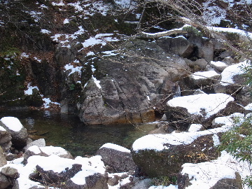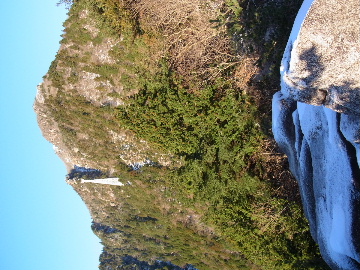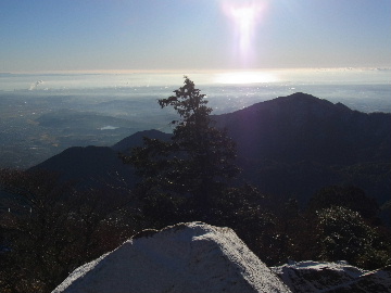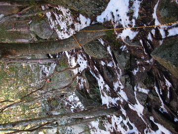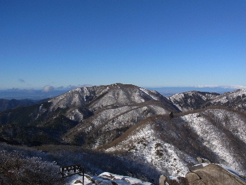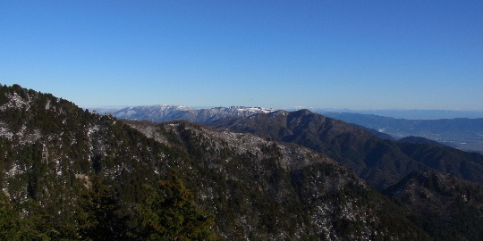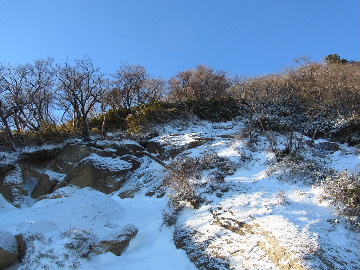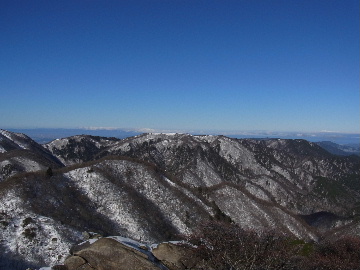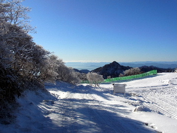 とうとう師走。人生の黄昏がどんどん迫って来ます。ダッシュでそれから逃げる為にも体力維持が必要です。てな訳で本日もトレーニング。ハードじゃなくてソフトなトレーニングです。 前日のニュースで御在所にも雪。道路は大丈夫? リスク回避に今回からレボーグで。タイヤも換えてありますし。 念の為、スパッツ、アイゼン、ツルハシも車に入れてでっぱつ。そうそう防寒テムレスも。 今日も北勢バイパス、477号バイパス、高角ICで477旧道と辿ります。北勢バイパスはアップダウンが多いのでレボーグは快適です。軽太郎ではエコランになりません。 こうやって辿ると湯の山街道のコンビニの多さが実感出来ます。ほんまにようさん在りますわ。そして菰野の道の駅、シャワートイレの有難さ。 また前置きが長ごうなってしもうた。話を戻します。 湯の山駅を過ぎ山道にさしかかると正面に御在所。薄っすらと雪化粧。朝日に頬をほんのりと染めています。その横にお月さん。お月さん、眩しい! もうちょっと遠慮しんかい! 6:30 a.m. 割谷駐車場着。 御在所は雪化粧じゃなくて樹枝に着いた霧氷が白く見えただけですね。 スカイライン側に放置車が一台、スカイラインもう閉鎖だよなあ。こちら側には2台停まっています。「少なっ!」お山もやっと静かになりました。 今日はお一人様。グズグズしてても大丈夫、のんびりのらりくらりとマイペースで。 6:45 a.m. でっぱつ。 まだ薄暗いですがラテは無用。というか結局先週の帰宅後、点くかどうか確認していません。ホント、グータラなんだから。 道路の脇に雪が少し残っています。往路でも積雪は無かったし、軽太郎クンでも大丈夫でした。でもまあ偶には普通車も良いものです。だって全然疲れないもの。 中道から行きます。オバレ石迂回ルートも話のタネに歩いておかないと。 オバレ石の下、右に巻く所はトラ紐で塞いであります。そこの左側から急斜面を這い上がるようにピンクテープが付けてあります。 テープに導かれ這い上がって行くと、オバレ石の上から硯石に向かう道に出ました。中道本道はこの北側を並行して付いています。そして硯石の横で合流。後はいつのも中道を行きます。 7:25 a.m. 岩棚着。雪は期待したよりずっと少なめ。 下界には薄く靄が漂いいかにも初冬の装い。 7:40 a.m. キレット着。 雲は無いのですが霞がかかり遠くの山があまり鮮明に見えません。それでも御嶽山、乗鞍、穂高の吊尾根も解ります。 8:00 a.m. 北谷テラス着。 ビアフェラータの岩峰に雪が着き綺麗です。雪、ベルグラが着くと一気にグレードが上がります。冬場も楽しいかも。 東の方は相変わらず霞んでいますが、あれ〜、富士山もぼんやりと見えています。南アルプスの右側に落ち込んでいる所、あの位置に見える筈ですからあれはまぎれもなく富士山。でも写真じゃ解りませんね。 掘割道を詰めると真正面にエルガーフェイス。青空をバックにカッケー。でも目地の雪は全く無しでお寂しまる。 8:20 a.m. 岩稜帯着。 北側には釈迦の上に白山が顔を覗かせています。伊勢平野は相変わらず靄がかかっています。 8:30 a.m. 上のテラス着。 これでどうじゃ! 乗鞍の左、一際白く見えてるのが吊尾根。こちらの高度が上がったおかげで霞が薄くなったのかも。 近場の鈴鹿北方と釈迦の上の白山はこんなにも鮮明。 薄く着いた雪を楽しみながら行きます。これくらいが一番綺麗。 8:45 a.m. 富士見岩着。 朝陽台経由で山頂広場へ向かいます。 雪があると写真ばっかり撮ってて無茶苦茶ロウペース。 8:55 a.m. 自然学校前で大休止。 ベンチに腰掛け日向ぼっこ。ポカポカ暖かいです。ロープウェイのお客さんもまだ上がって来ないようで静かです。 雪の照り返しもありホント極楽。コンビニオニギリの美味い事! しっかり休み、さあでっぱつ。 9:35 a.m. 三角点着。 相変わらず北アルプス辺りがよく見えています。 望湖台も今日は独り占め。 記念碑広場経由で峠道へ。マンネリコースです。 この下の斜面も雪が少なくブッシュだらけ。当然【どこでも歩き】はお預け。 峠道を駆け下ります。雪で滑って転んで大分県にならないように・・・。ほら、また滑った! あっという間にもうガレ場。 10:15 a.m. 武平峠通過。 久しぶりの雪でアンヨが草臥れたから鎌はお預け。スカイラインへ降ります。また11時コースかあ? 10:55 a.m. 駐車場着。 すっかり晴れ渡り朝の霧氷も完全に消えてしまいました。 さあ着替えてさっさと帰りましょ。お買い物頼まれていたのでした。 ストレスなしの普通車でドライブを楽しみながら。 |